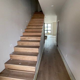Our entire team is overjoyed to announce that Building G is complete. The finishing touches (shower doors, mirrors, toilet paper holders, and towel hooks) have been installed and Certificates of Occupancy have been provided. Building C is following closely and all units have already passed final plumbing and electrical inspections. Stair treads arrived this week and once in place, interior railings can be installed. Appliances were delivered to Building E this week and installation is underway. The tile crew is back at work in Building A and the flooring installation continues. The landscapers continue to work on the last of the trees and other planting. Remaining work on the roadway is in process.
